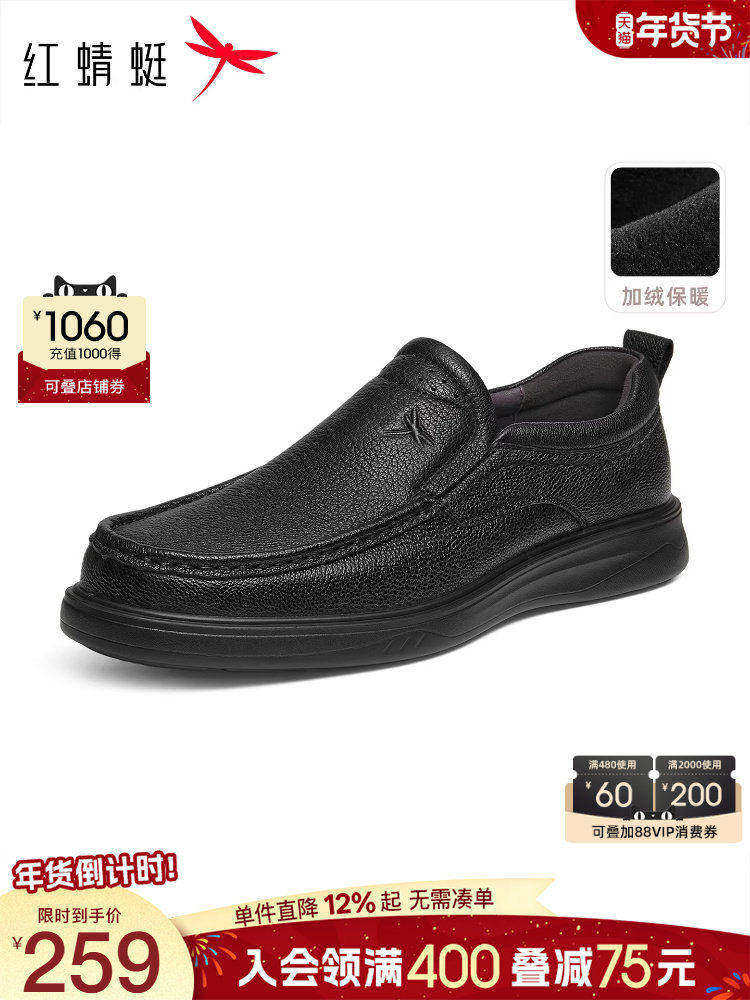 Red Dragonfly Men's Shoes Winter New Casual Leather Shoes Men's Soft-Soled Slip-On Genuine Leather Shoes for Middle-Aged Men Dad Shoes