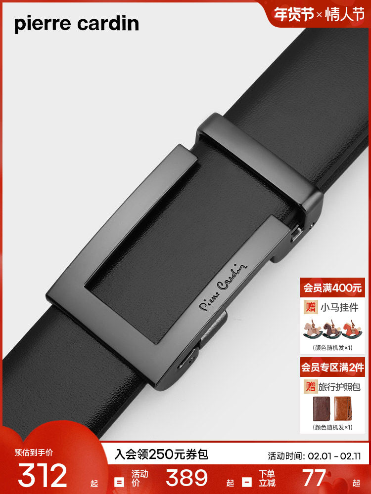 Pierre Cardin Belt for Men, Genuine Leather, Business Casual, Red Belt, Authentic Cowhide, Men's Zodiac Year Belt