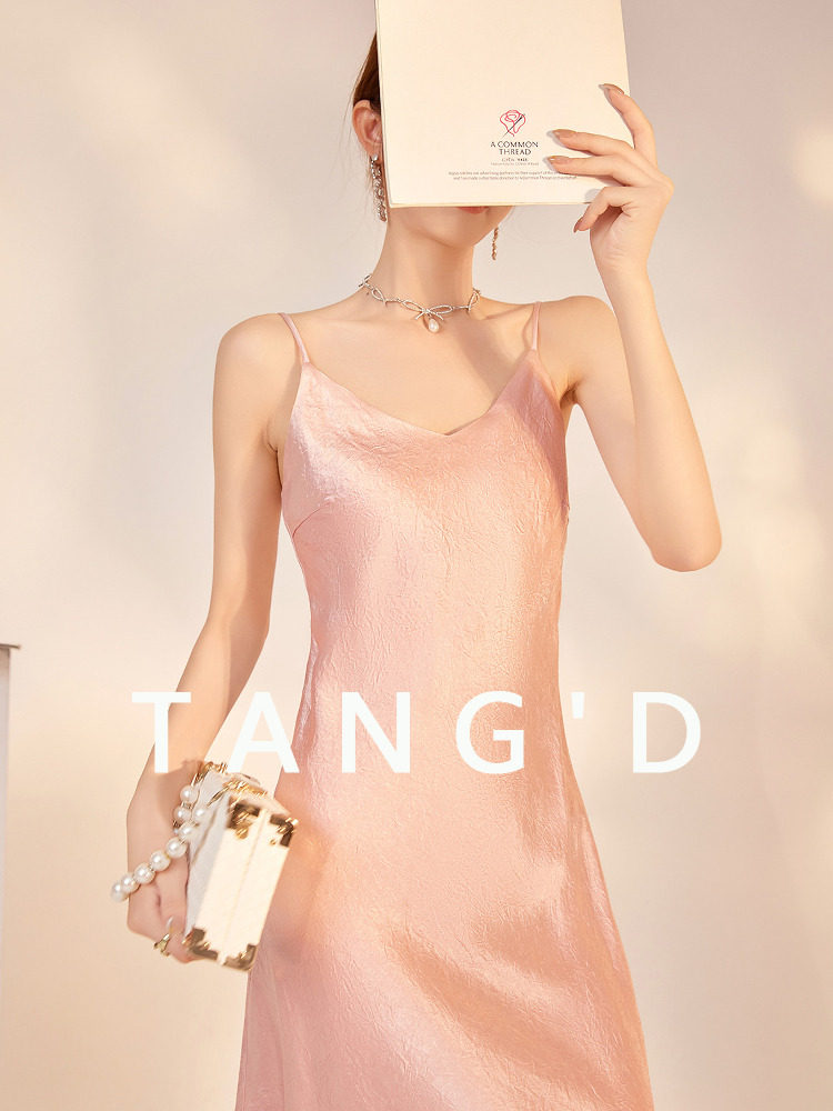 Tang Dou Haute Couture【Yunshang】New Chinese Style Solid Color Waist Acetate Strap Dress Simple Light Luxury Long Dress