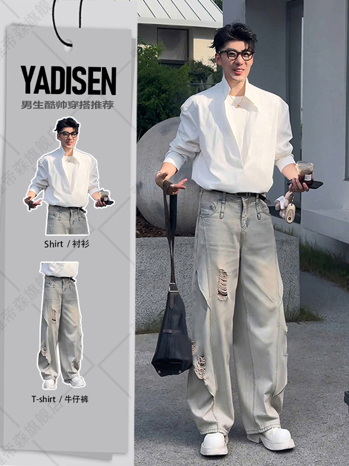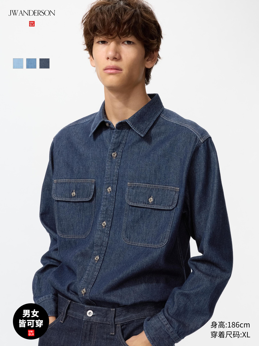 Uniqlo Collaboration Model/Men's and Women's Denim Shirts/Washed Long-Sleeve Shirts 484245