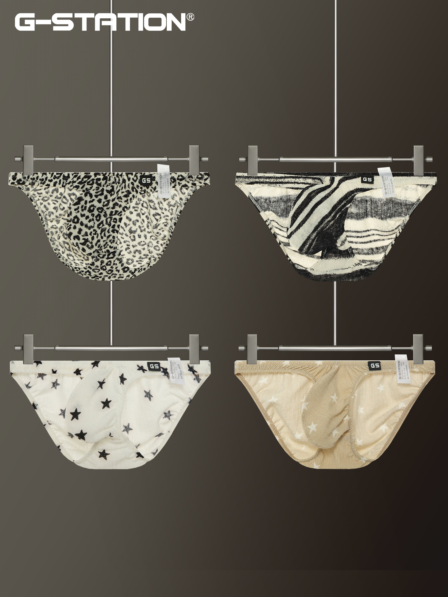 G-Station Sexy Japanese Style Men's Briefs with Small Triangle Cut, Star Pattern, Polyester, Small Mesh, Breathable and Quick-Drying Underwear