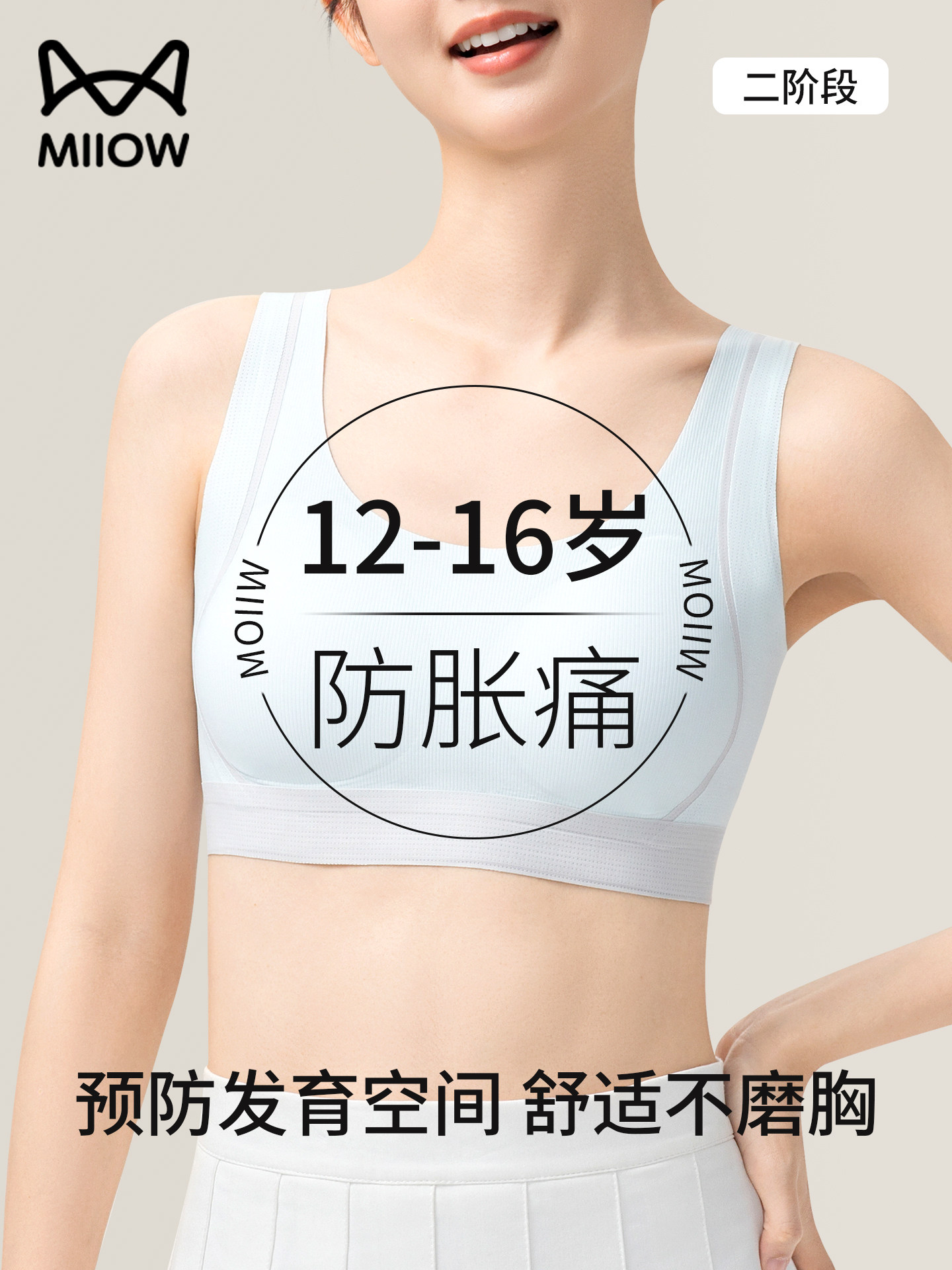 Catman Girls' Underwear for Students and Teenagers in the Developmental Stage, Middle School Students' Second Stage Sports Shock-Proof Bra for 12-Year-Old Girls