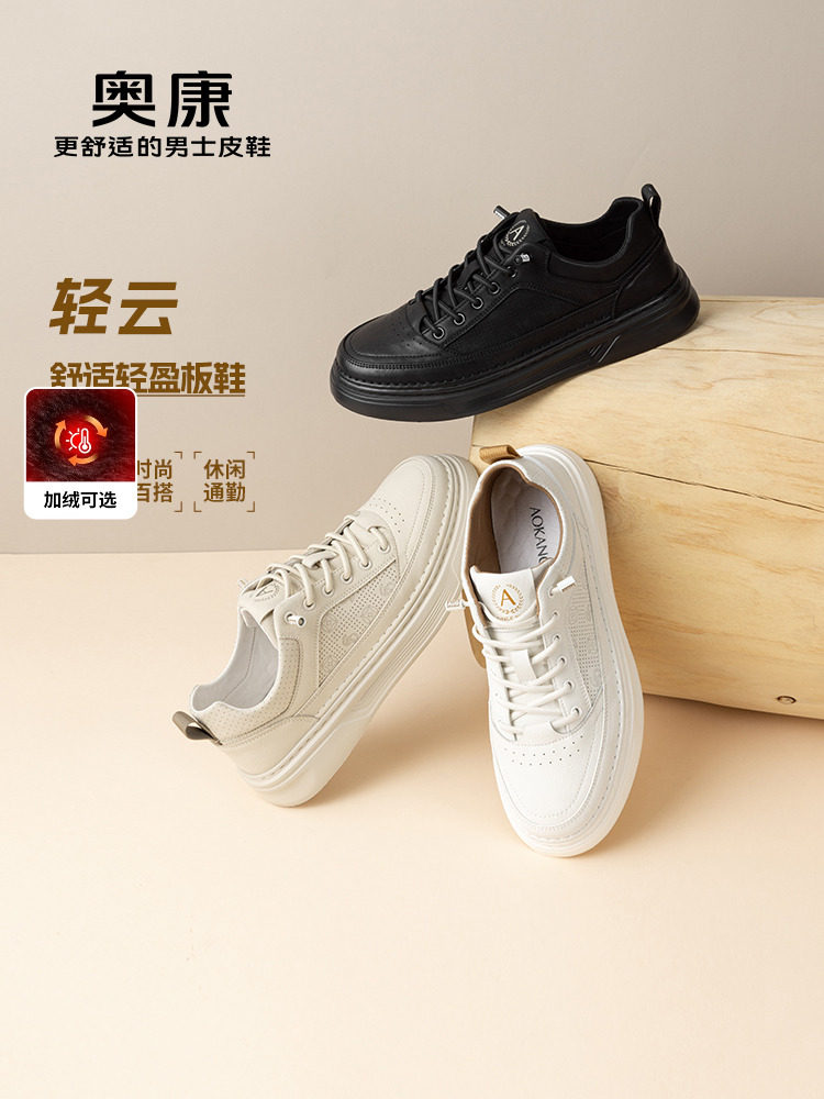 【Qingyun】Aokang Men's Shoes 2025 New Spring Men's Casual Sneakers Height-Increasing Soft Sole Non-Slip Sports White Shoes