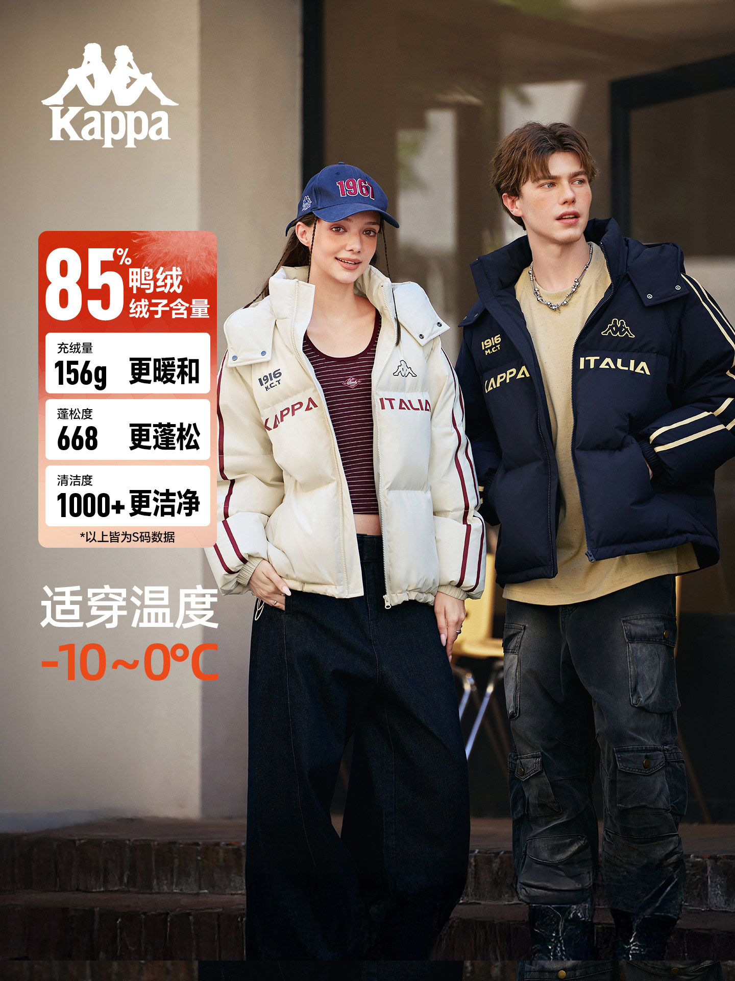 Kappa Back-To-Back Sports Hooded down Jacket for Men and Women, New Autumn and Winter Duck down Retro Warm Coat