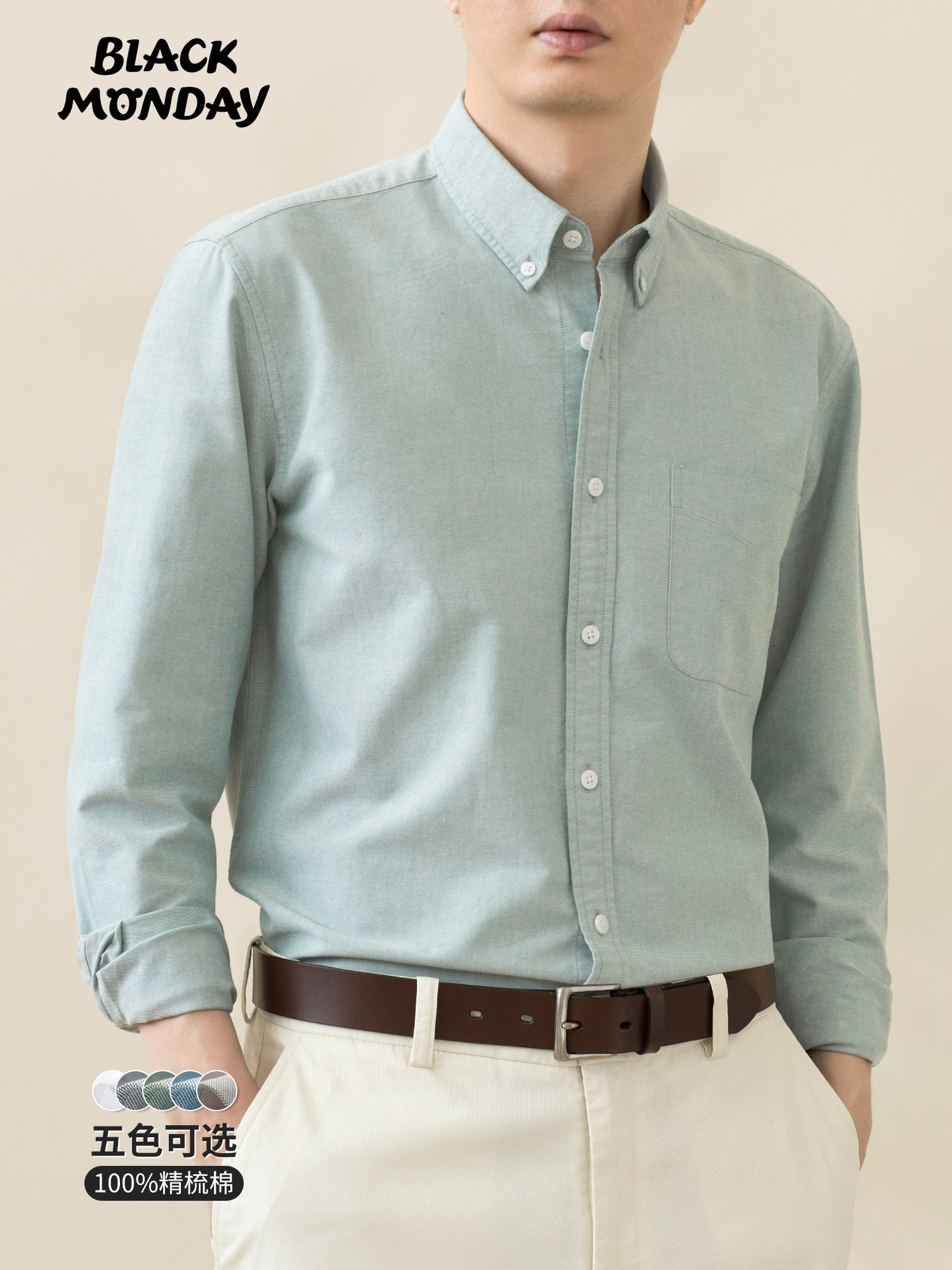2025 Autumn New Pure Cotton Oxford Long-Sleeve Shirt Men's Casual Business Basic Youth Shirt