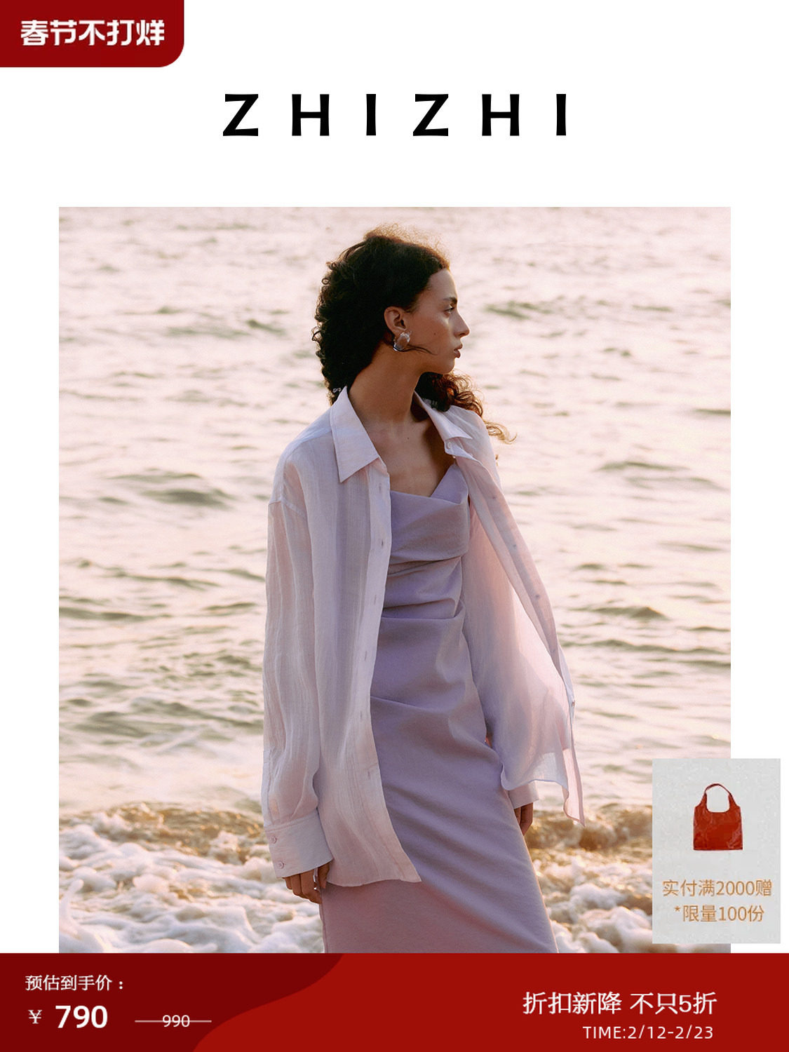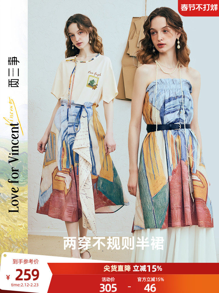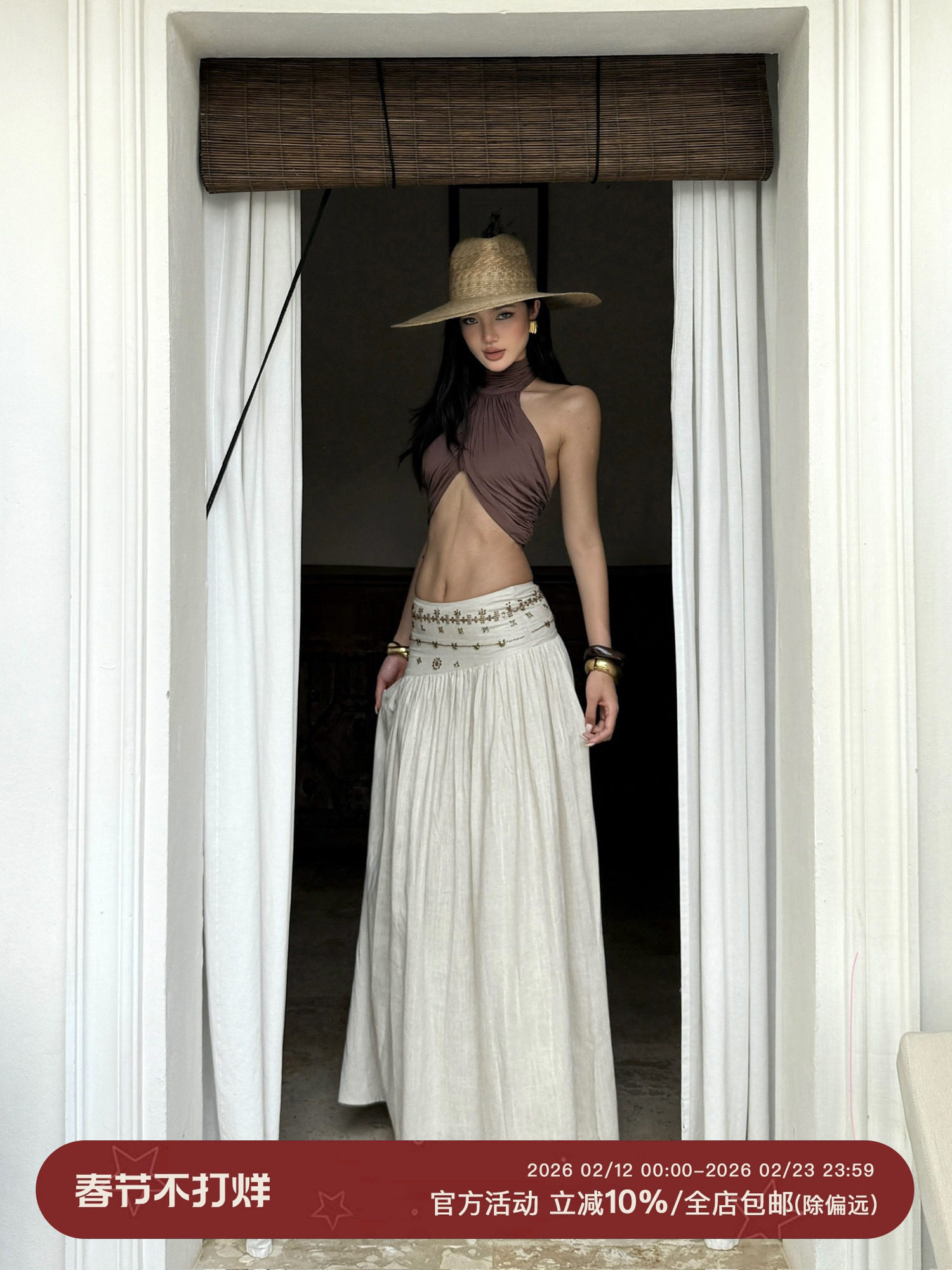 Rovente Wave Resort Off-White A-Line Skirt Women's Spring Thin Skirt Holiday Retro Low-Waist Long Skirt