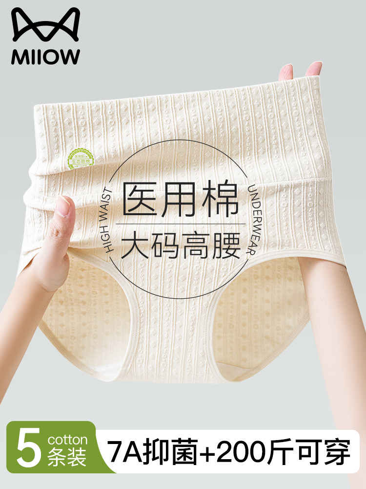 Cat-Themed Plus-Size Women's Underwear, Pure Cotton, High-Waisted, Tummy Control, All-Cotton, Antibacterial Crotch, Seamless Girls' Briefs, 2026 New Model