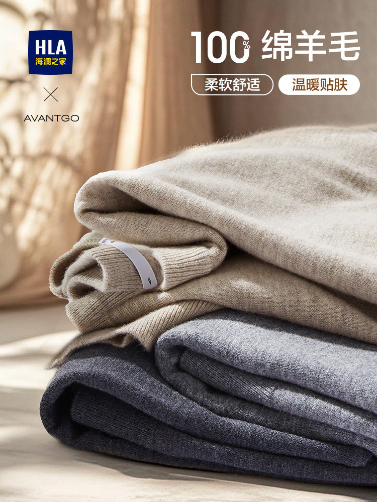 Hla/Hailan Home Light Business Pure Wool Long Sleeve Knit Sweater 25 Autumn/Winter New Black Sweater Base Layer for Men