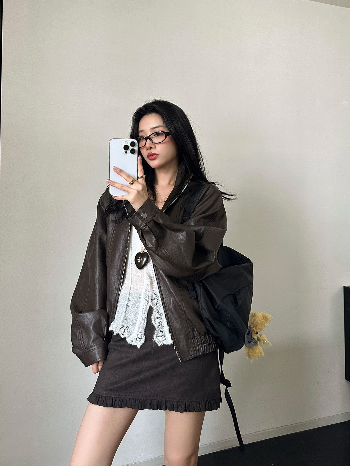 Left Side Women's Loose-Fitting Jacket Top 2025 Spring New Casual Stand-Up Collar Leather Jacket