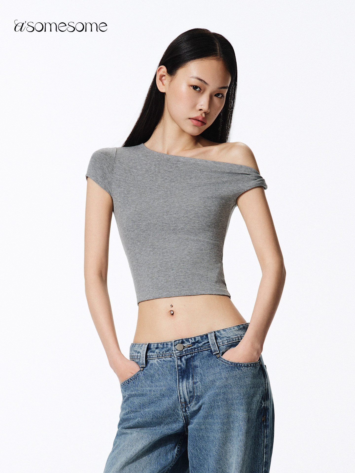 Asomesome Ouyang Nana Style American Hot Girl Twist-Knot Short-Sleeve T-Shirt Women's Short Off-Shoulder Tight Top