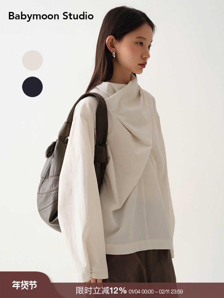 Babymoon Scarf Collar Design Long-Sleeved Shirt, New Spring and Autumn Style, Unique and Elegant Loose-Fitting Top for Women