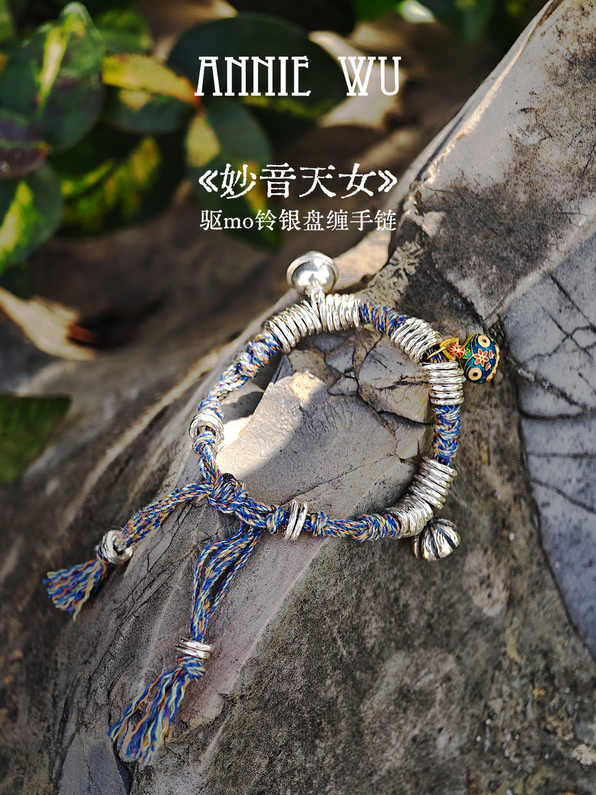 Annie Wu【Miaoyin Tiya】Tibetan-Style Mo-Repelling Bell 925 Silver Coiled Rope Bracelet Chinese-Style Cultural Jewelry
