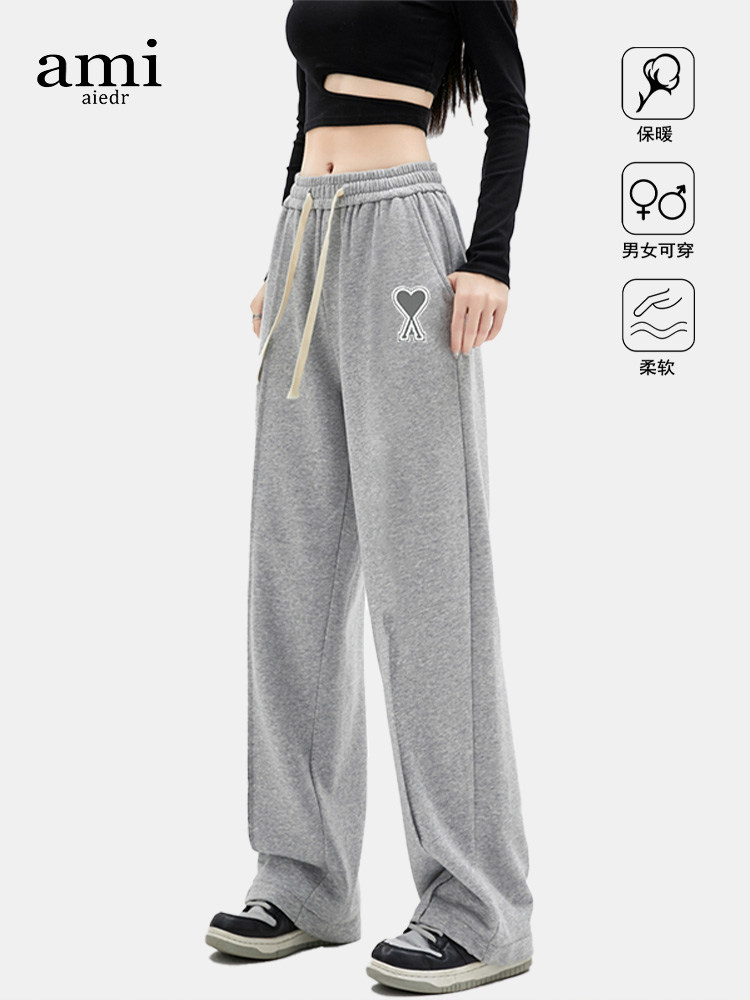 Ami Aiedr Official Straight-Leg Jogger Sweatpants for Men and Women, New Autumn and Winter Couple's Trendy Casual Sports Long Pants