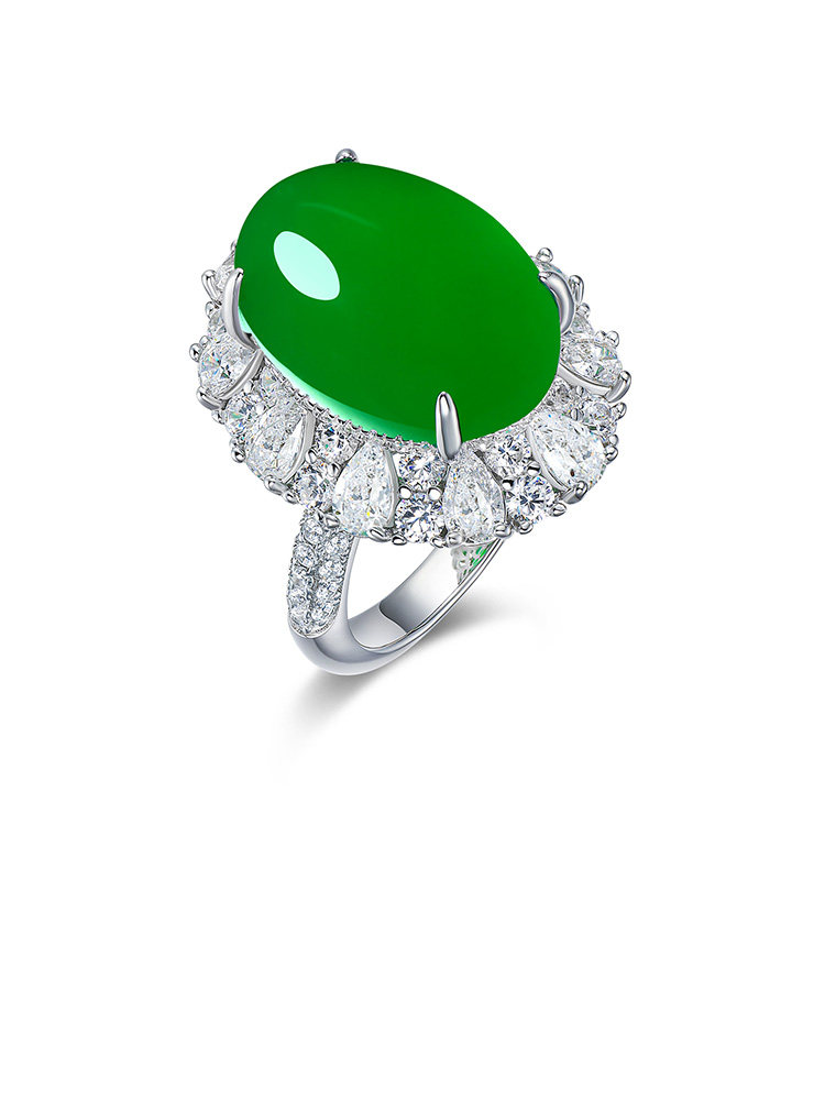 Aileq Sterling Silver Natural Chalcedony Stone Ring, Extra Large Pigeon Egg Cut, Comparable to Jade, New Chinese Style, Women's Light Luxury K10