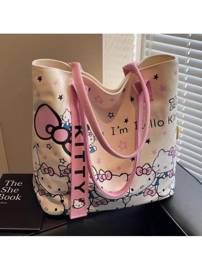 2025 New Canvas Bag for Women, Large Capacity Tote, Student Cartoon Casual Outing Shoulder Bag, Commuter Handbag Lx