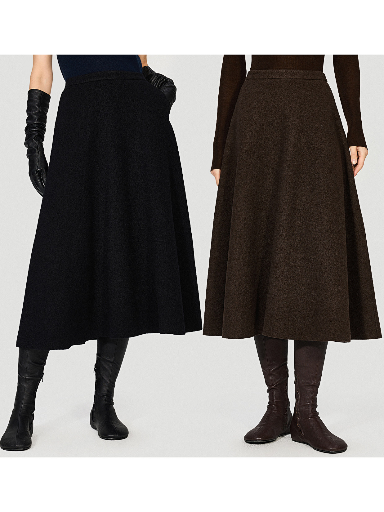 Open-Front/Australian Mixed-Color Looped Merino Knit Wool Classic Elegant Silk Waist A-Line Skirt