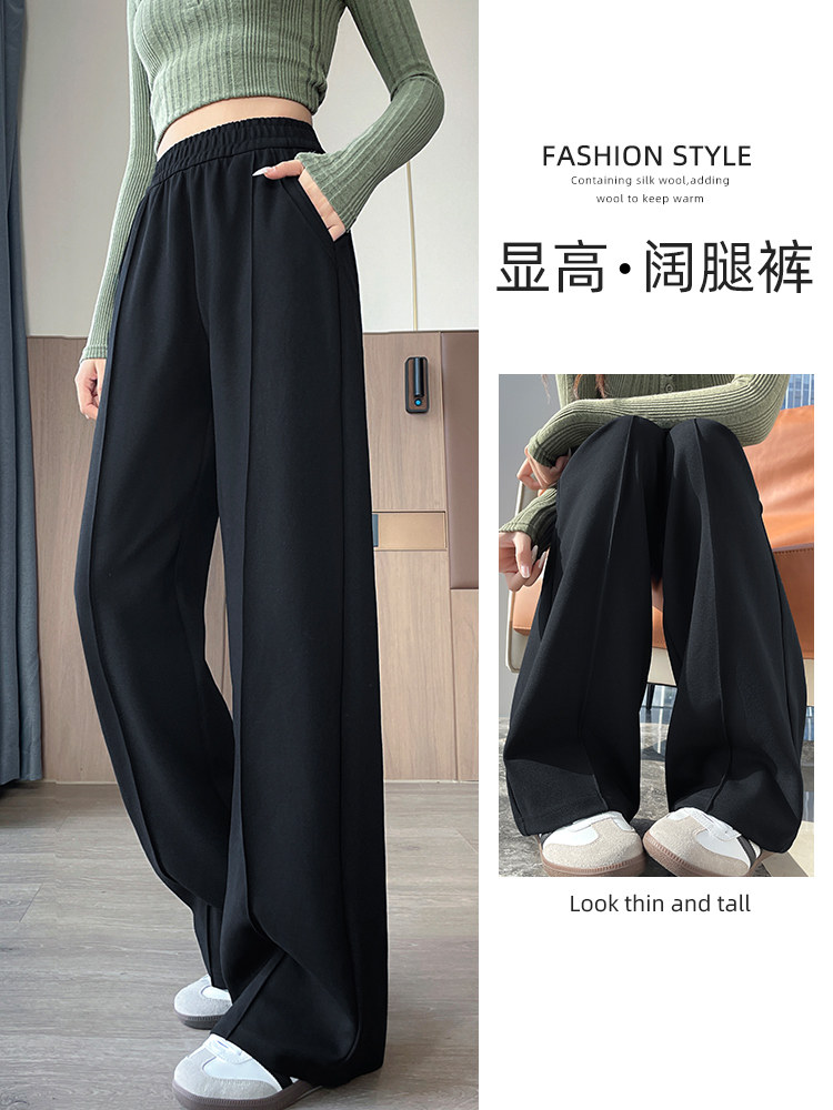 2025 Summer Ice Silk Thin Narrow Wide-Leg Suit Pants for Women, Spring and Autumn High-Waisted Loose Casual Slimming Draped Straight-Leg Pants