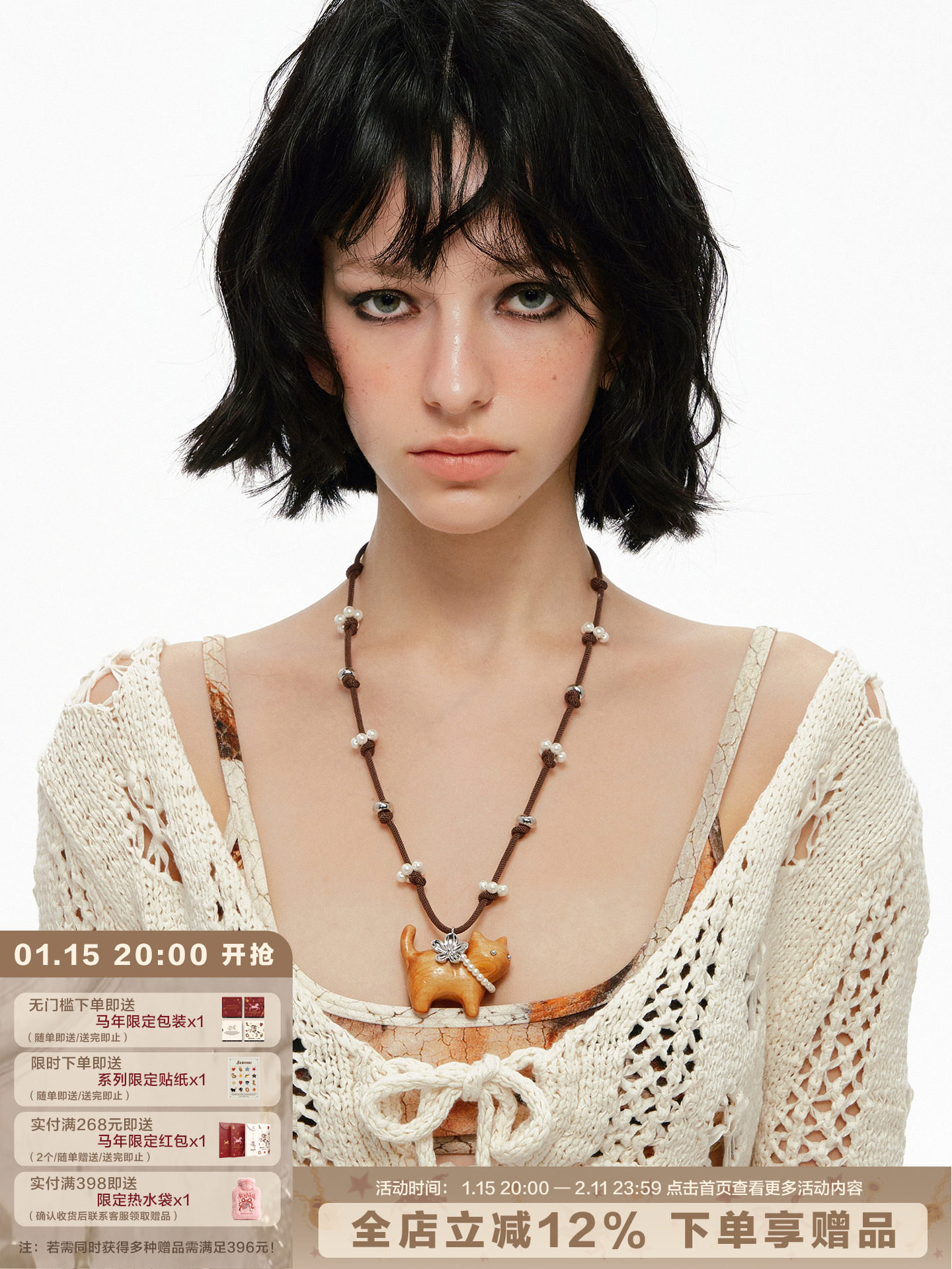 Sumiyaki Kitten Pearl Braided Necklace Niche Design Sweater Chain Birthday Gift for Girls