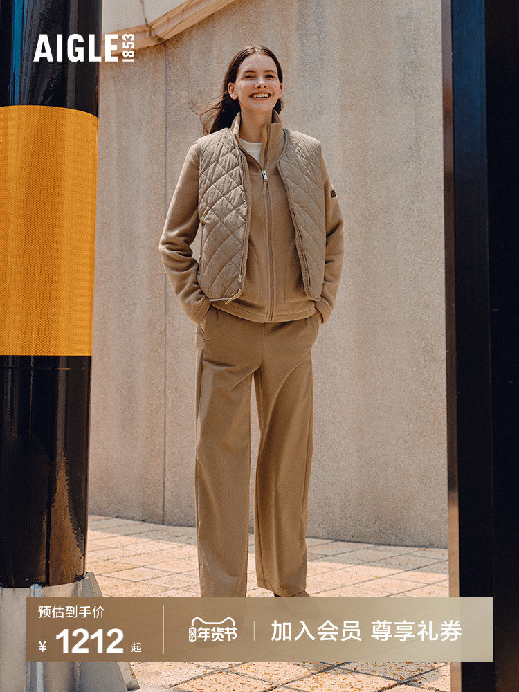 [Same Style as Li Qin] Aigle Women's Long Pants Outdoor Casual Pants Autumn and Winter Warm Straight-Leg Pants