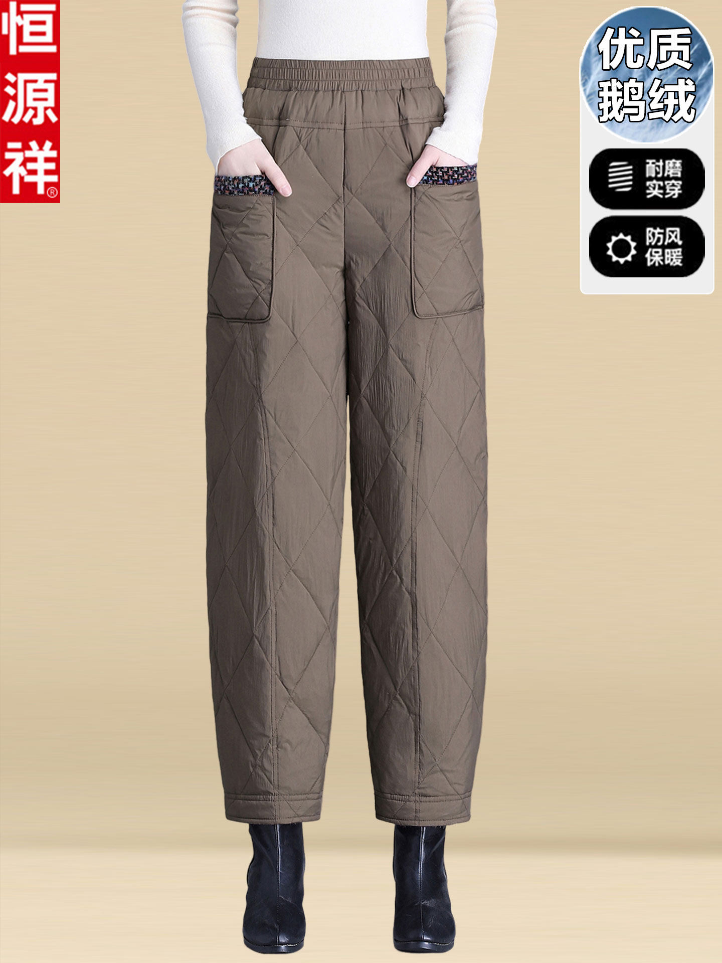 Hengyuanxiang Winter down Pants for Mothers, Suitable for Middle-Aged and Elderly Women, Thickened for Warmth and Cold Protection, Straight-Leg Goose down Cotton Pants