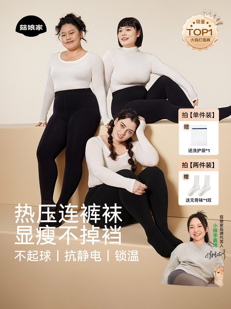 Gumujia Hot-Pressed Pantyhose High-Thread-Count Cotton Wool Gray Leggings for Women Plus Size Autumn and Winter Black Warm Slimming Socks
