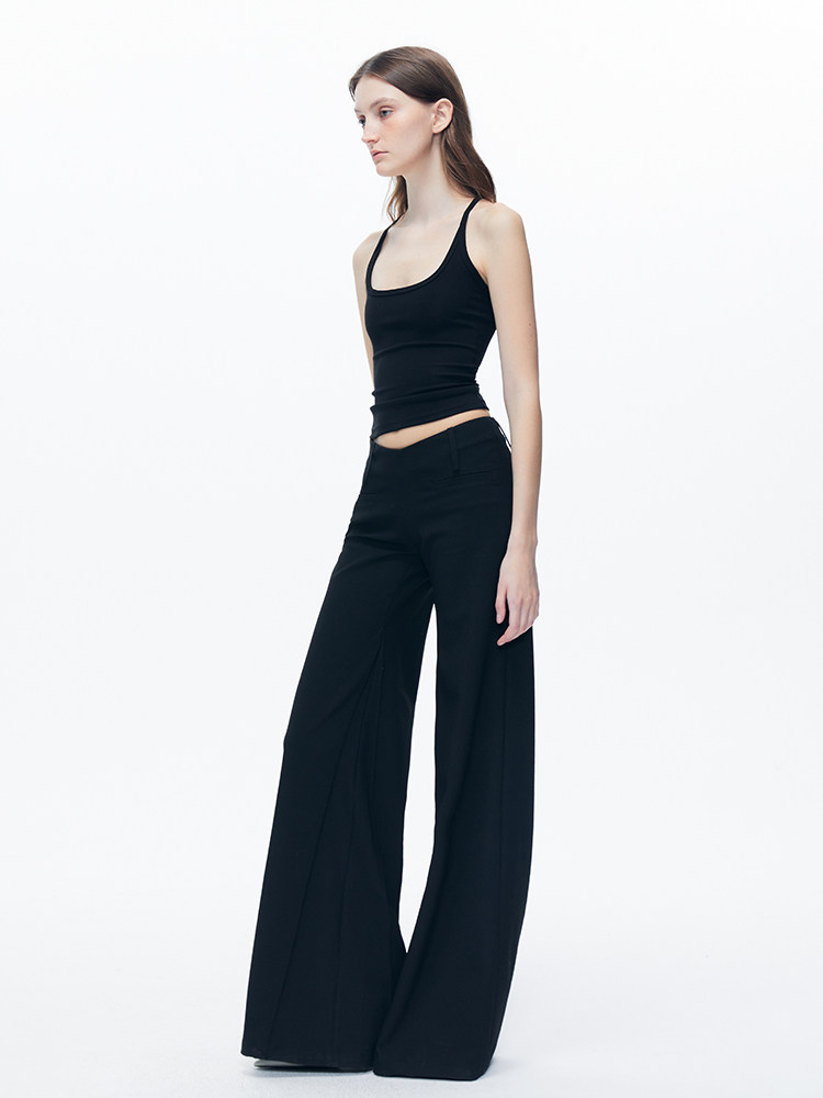 Kvkv Black Low-Waist Slim-Fit V-Shaped Trousers American Style Retro Casual Slimming Wide-Leg Flared Long Pants for Women