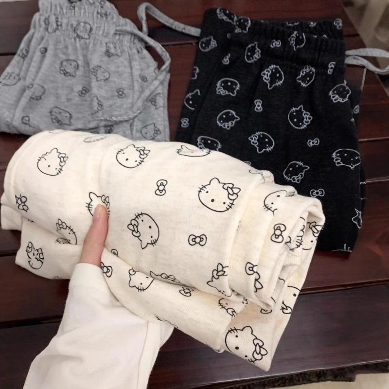 Hellokitty Walking Pajama Pants for Women, Autumn and Winter, Can Be Worn Outside, Glutinous Rice Pants, Casual Home Wide-Leg Long Pants, Straight and Loose