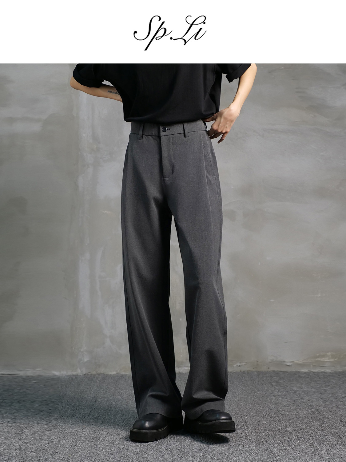 Dm Tenacious Cleanfit Diagonal Pleated Loose Wide-Leg Casual Scimitar Hem Floor-Length Pants for Men