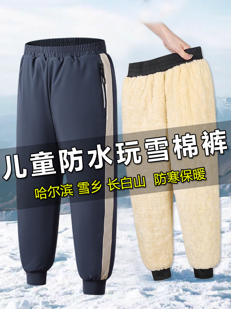 Snow Country Windproof Winter Children's Padded Pants for Boys and Girls, Outdoor Thickened Northeast Harbin Waterproof Snow Pants