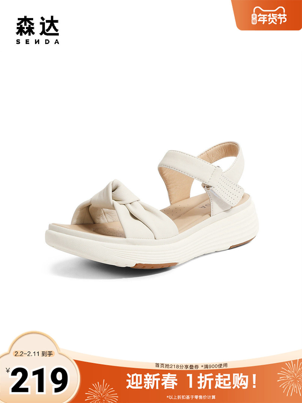 Senda Leather Sandals Women's 2024 Summer New Shopping Mall Same Style Plaid Thick Sole Slv02Bl4