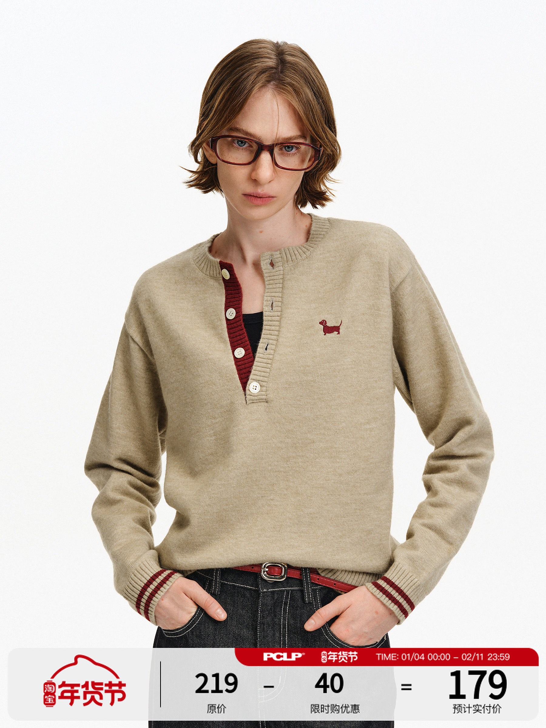 Pclp Intercolor Henry Collar Sweater, Loose Retro Trendy Lazy Couple Pullover Long-Sleeve Knitwear for Spring and Autumn