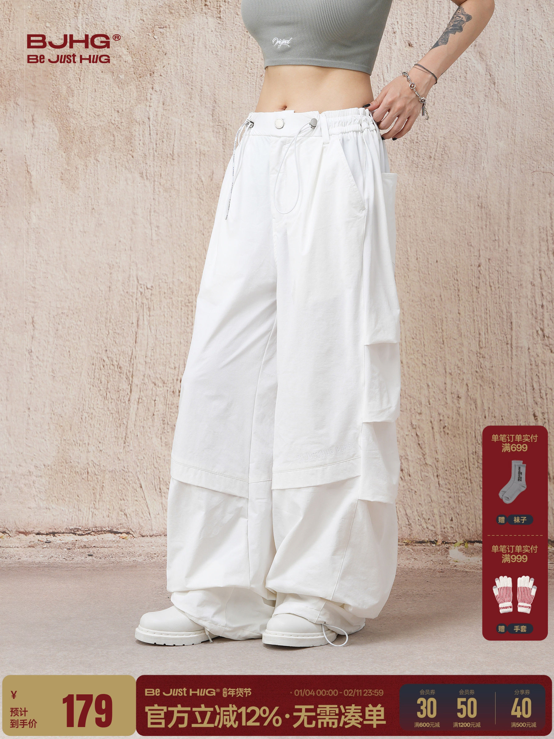 Song Yuqi's Same Style Bjhg Reckless White Work Pants for Men, Spring Lightweight Three-Proof Outdoor Paratrooper Pants for Women