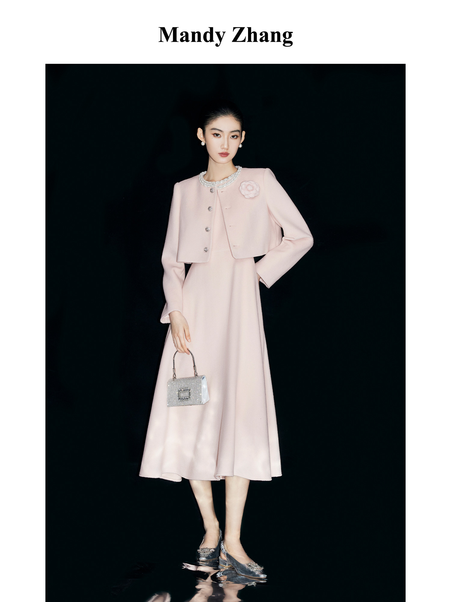 Mandyzhang Pearl-Encrusted Pure Woolen Outwear for Women in Autumn and Winter, Gentle Pink Engagement Dress, Coat Suit