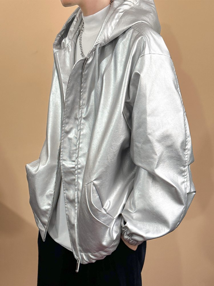Silver Leather Jacket Men's Futuristic Tech Clothing Performance Costume Men's Cyberpunk Shiny Jacket Top