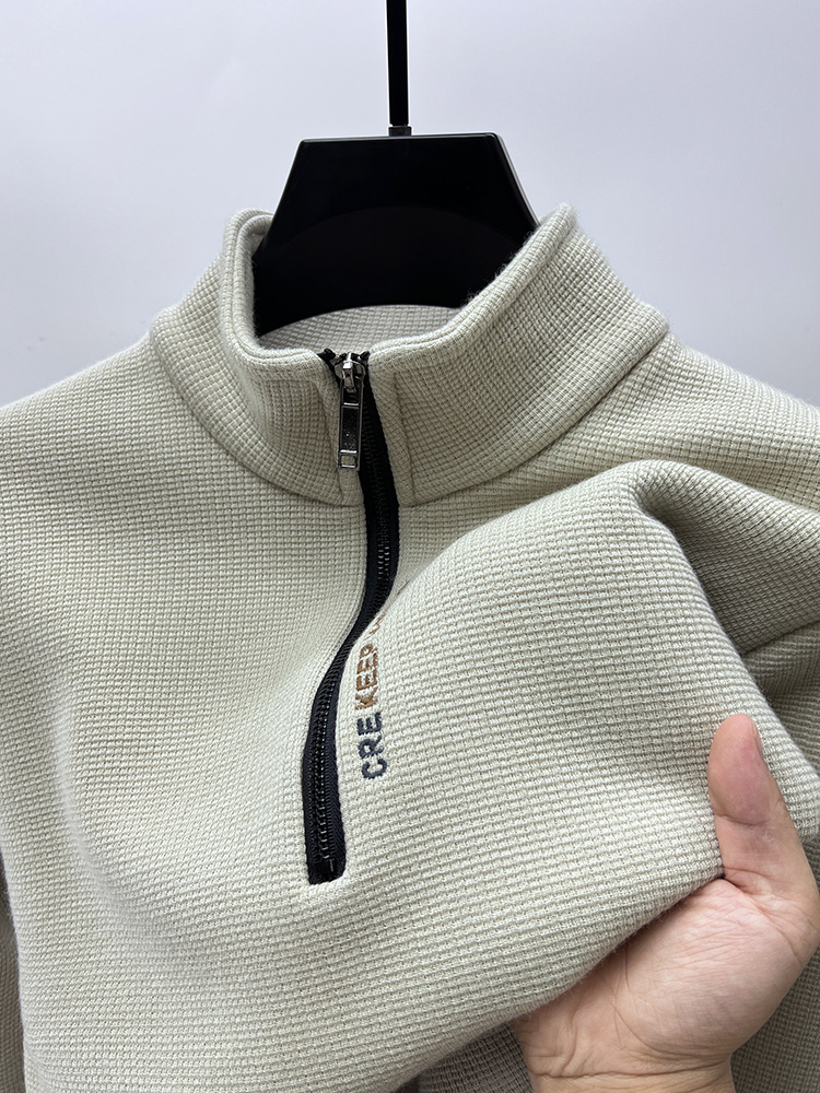 Half-Zip Fleece-Lined Thickened Sweatshirt for Men, Winter Warm Casual Long-Sleeve T-Shirt with Stand Collar, Men's Base Layer Jacket