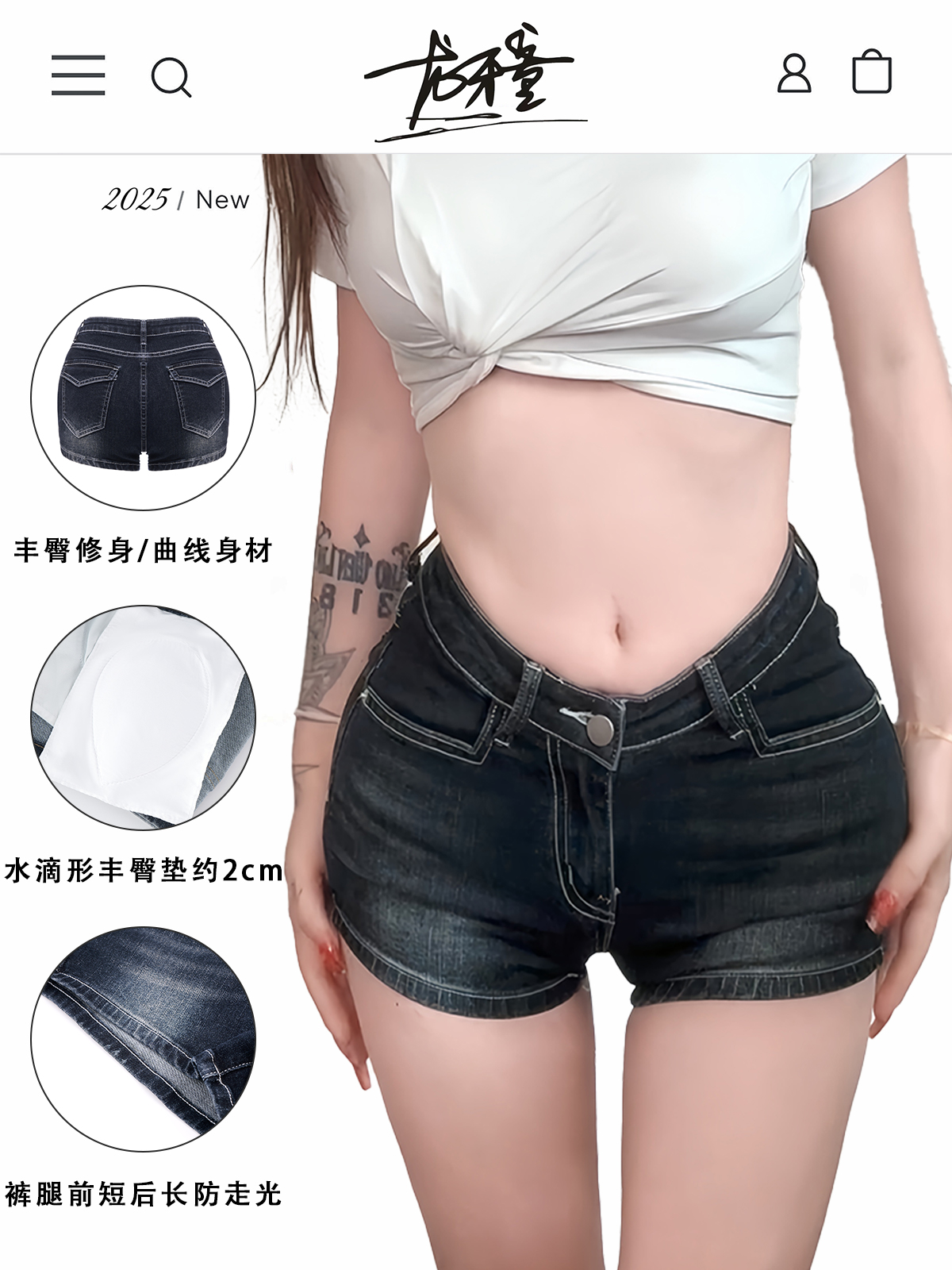 Longyatong Recommends [V-Waist, Hip-Enhancing] Sexy Slim-Fit Slightly Stretchy Denim Shorts with a Sexy Butt-Hugging Irregular Design