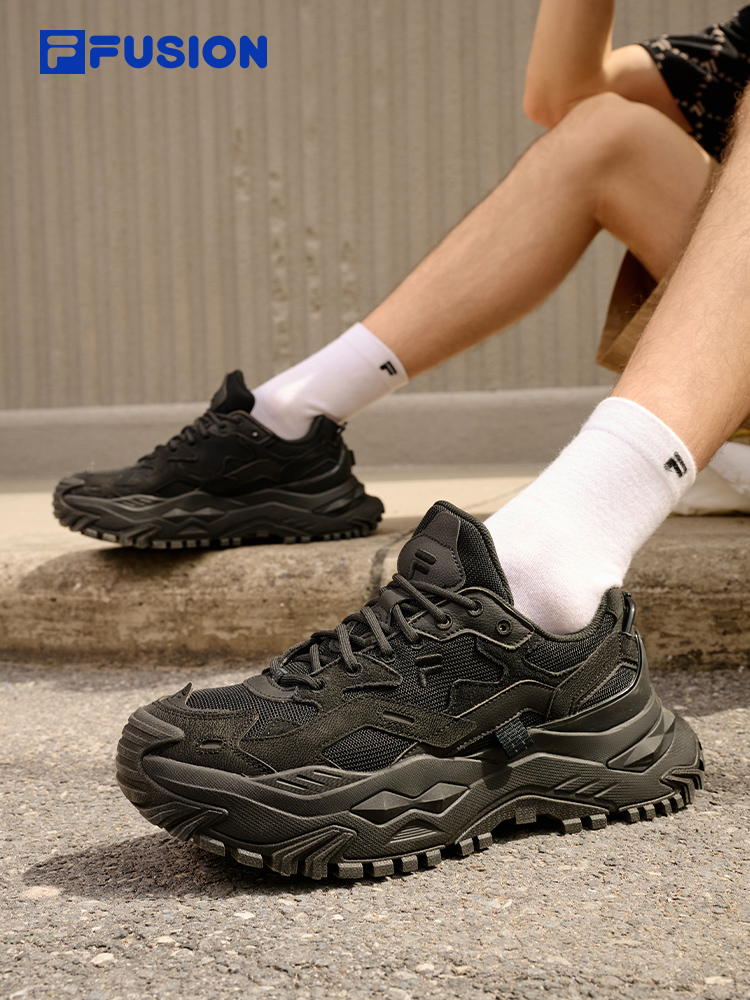 Fila Hard Candy Men's Shoes Black Warrior Thick-Soled Height-Increasing Men's Commuting Sneakers Pure Black Dad Shoes