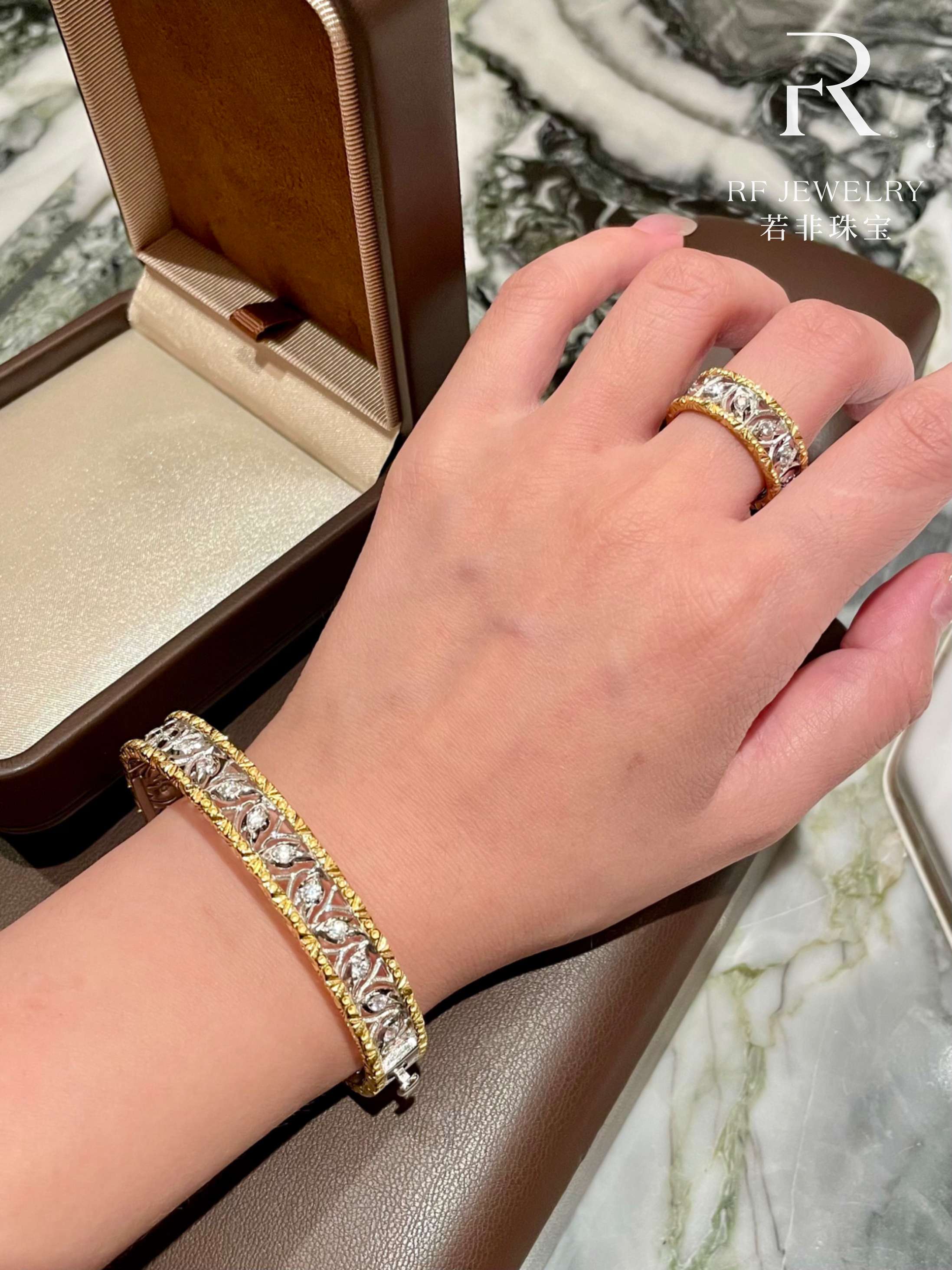 If It Were Not for Jewelry|Vintage Hollow Carved Palace-Style Bracelet and Ring Set|S925 Silver Gold-Plated