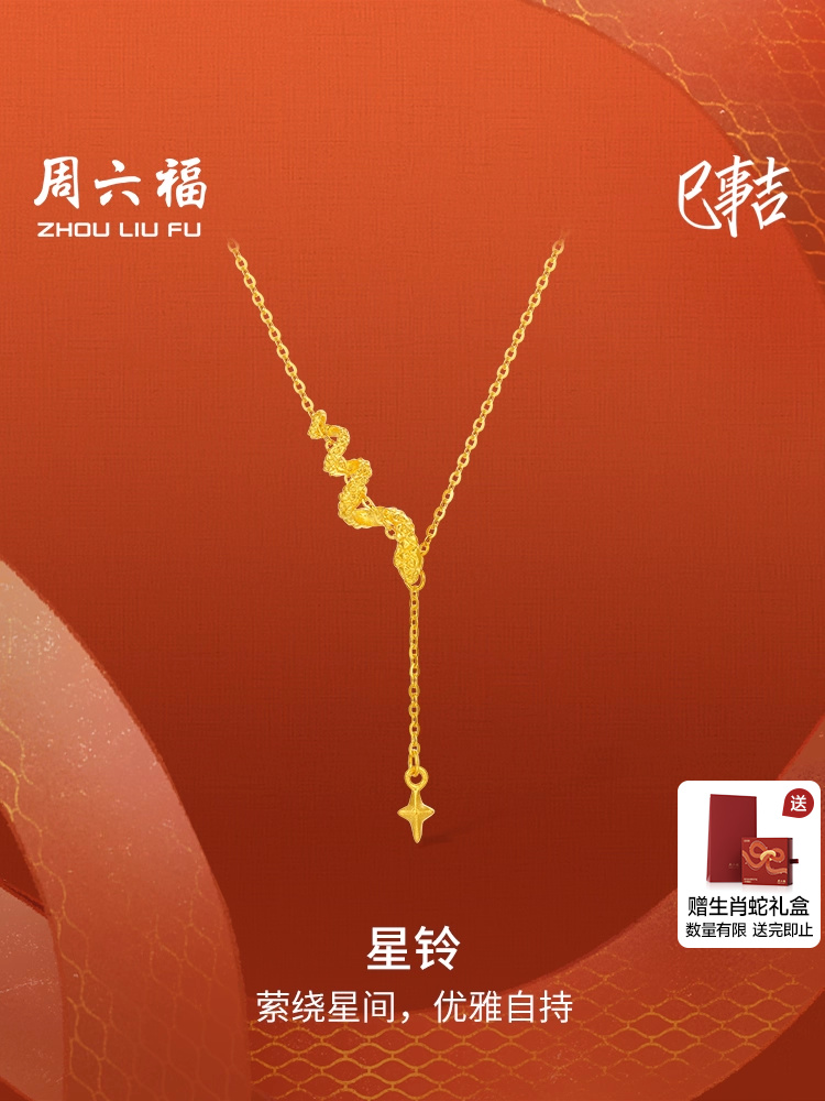 Saturday Fortune Gold Necklace for Women, Pure Gold Star Bell Pendant, Zodiac Snake Series, Gift for Girlfriend on Holidays