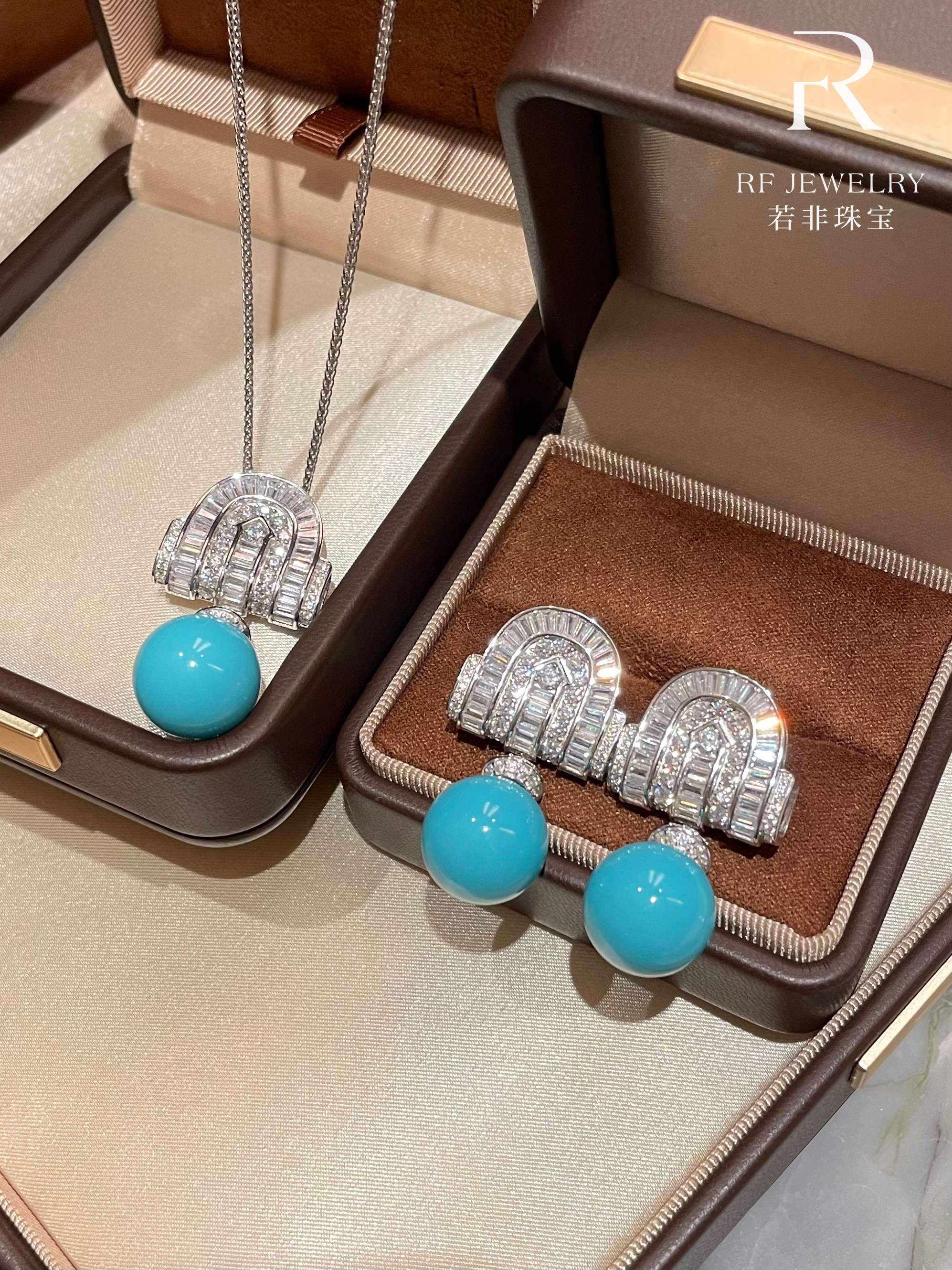 If It Were Not Jewelry|Cool and Elegant Artificial Blue Pine Shield Necklace and Earring Set|S925 Silver Gold-Plated