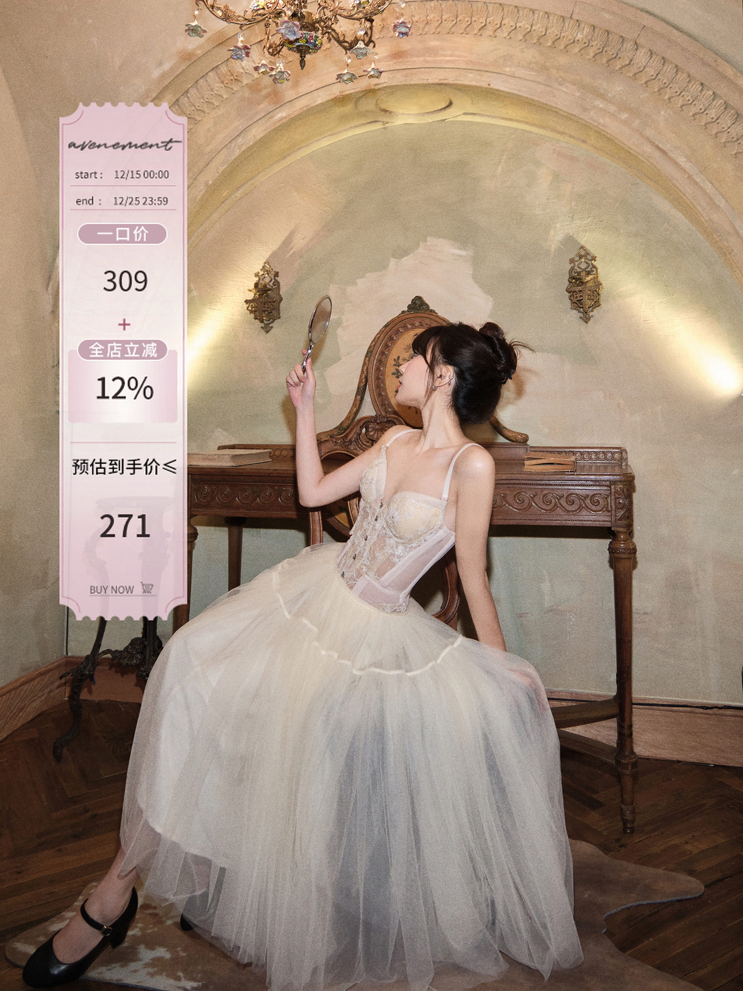 Avenement/Old Dream Ballet/French Court Style Mesh Skirt Gauze Skirt A-Line Tutu Skirt Mid-Length Skirt for Women