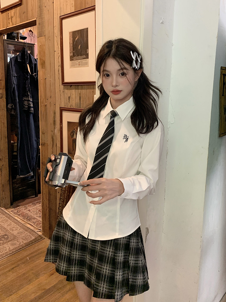Tokyo Seasonal Diary Jk Shirt White Uniform Long-Sleeved Waist-Cinching Academy Style Slim-Fit Top Commuter Shirt Moonlight High