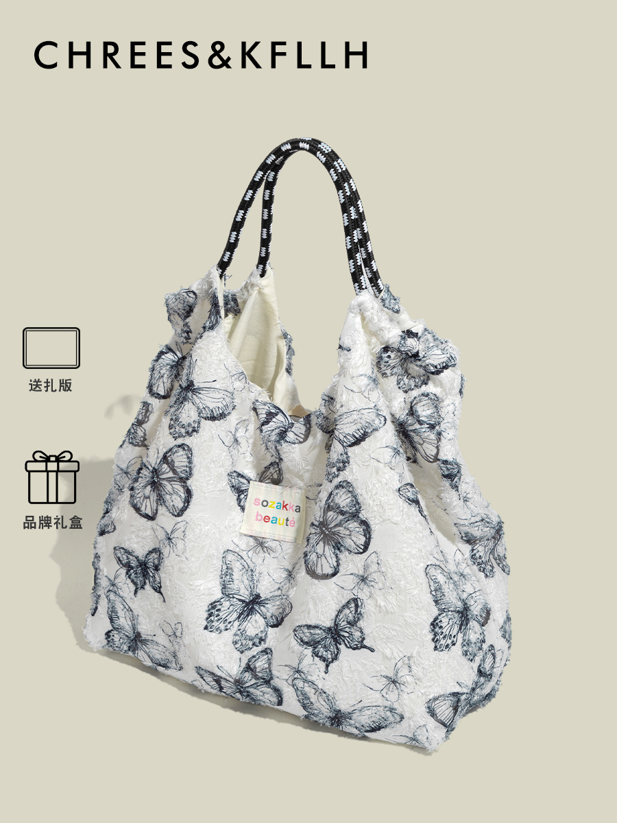 Chrees&Kfllh Lazy Style Lace Butterfly Canvas Tote Bag Women's Spring and Summer Large Capacity Commuter Handbag