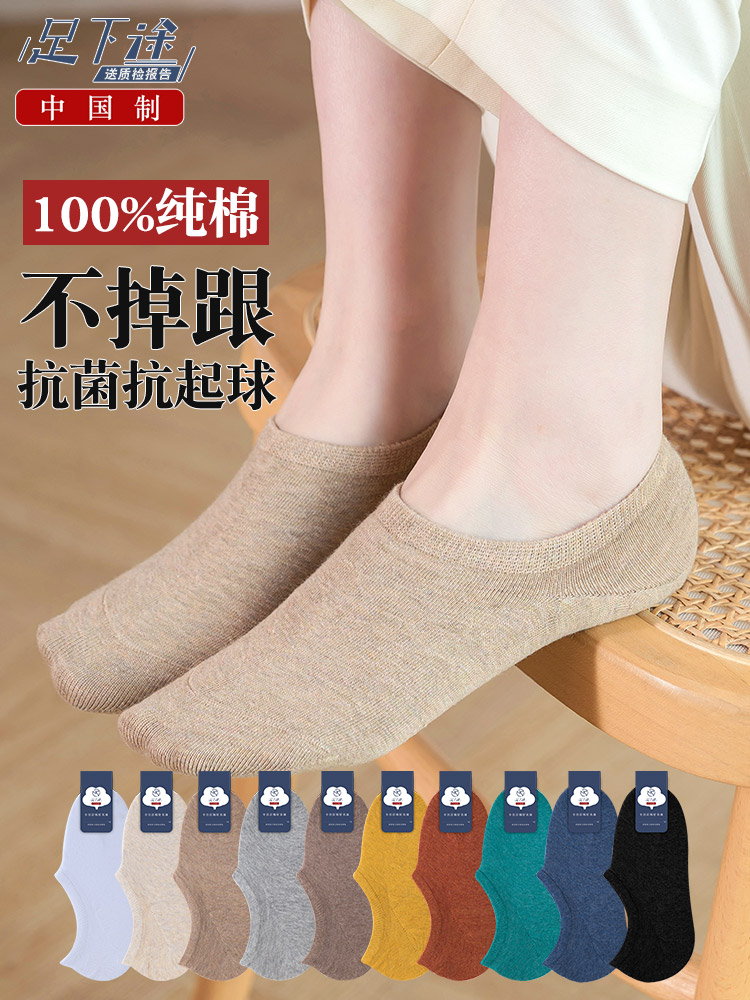 100% Pure Cotton Socks for Women, No-Show Socks, Non-Slip, Won'T Fall Off, All-Cotton Low-Cut Short Socks, Thin Summer Socks for Women