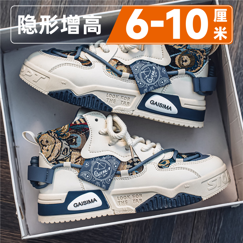 Men's Trendy Shoes 2025 New Model Thick-Soled Invisible Height Increase 10cm Autumn Casual Sports Versatile High-Top Sneakers