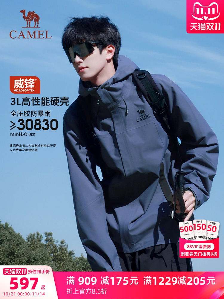 Camel Peak Outdoor Shell Stormsuit Men's New arrival Hard Shell Outwear 3L Adhesive Professional Waterproof Single Layer Mountaineering Suit Women