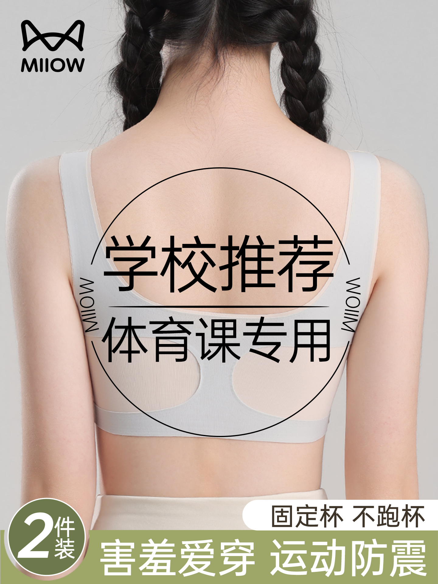 Cat Girl Bra for Middle and High School Students, Puberty Development, Student Sports, Shockproof, Seamless, Thin Vest-Style Underwear