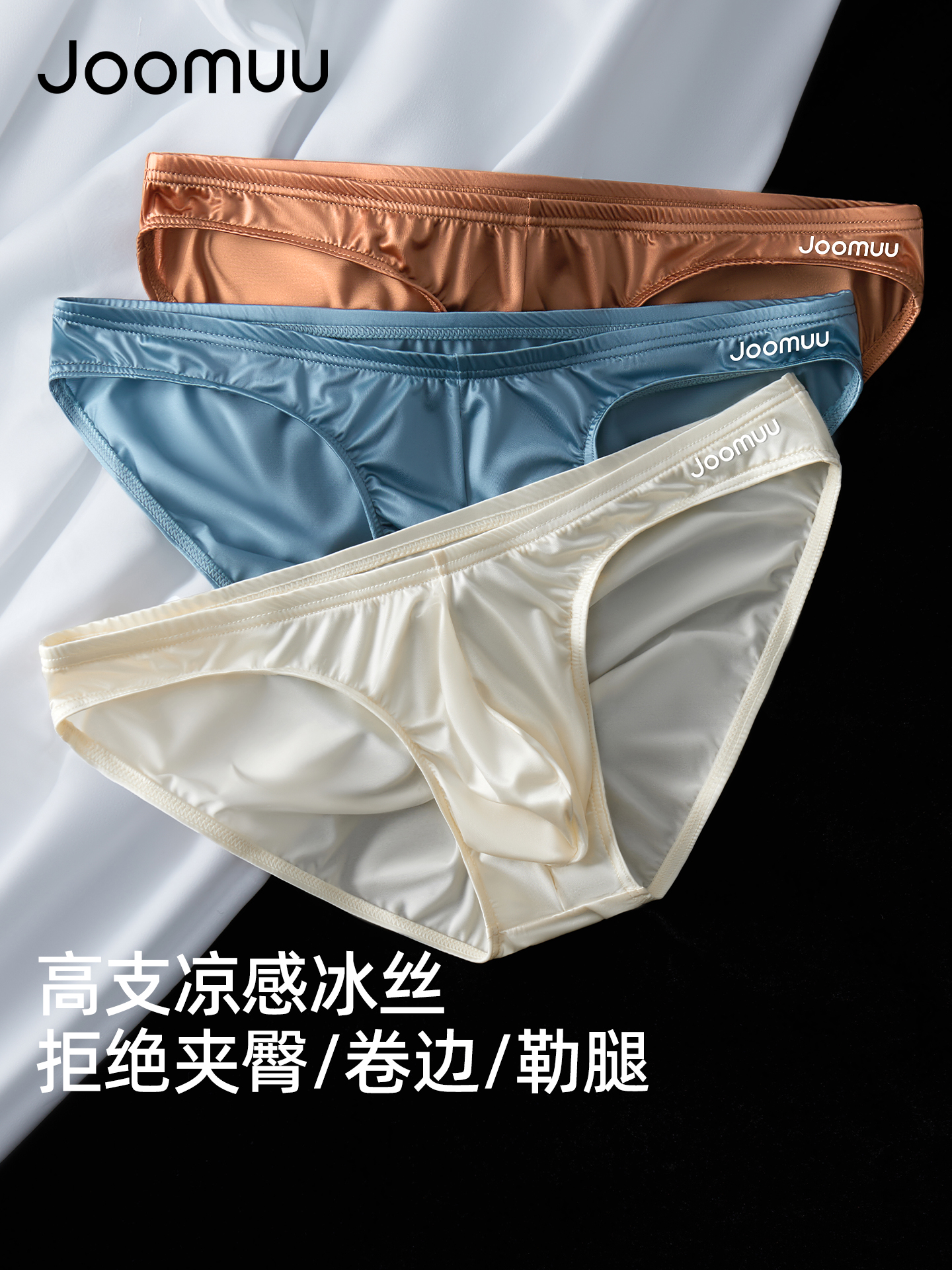 Joomuu Men's Briefs Ice Silk Satin Sexy 2025 New Breathable Low-Rise Men's Shorts