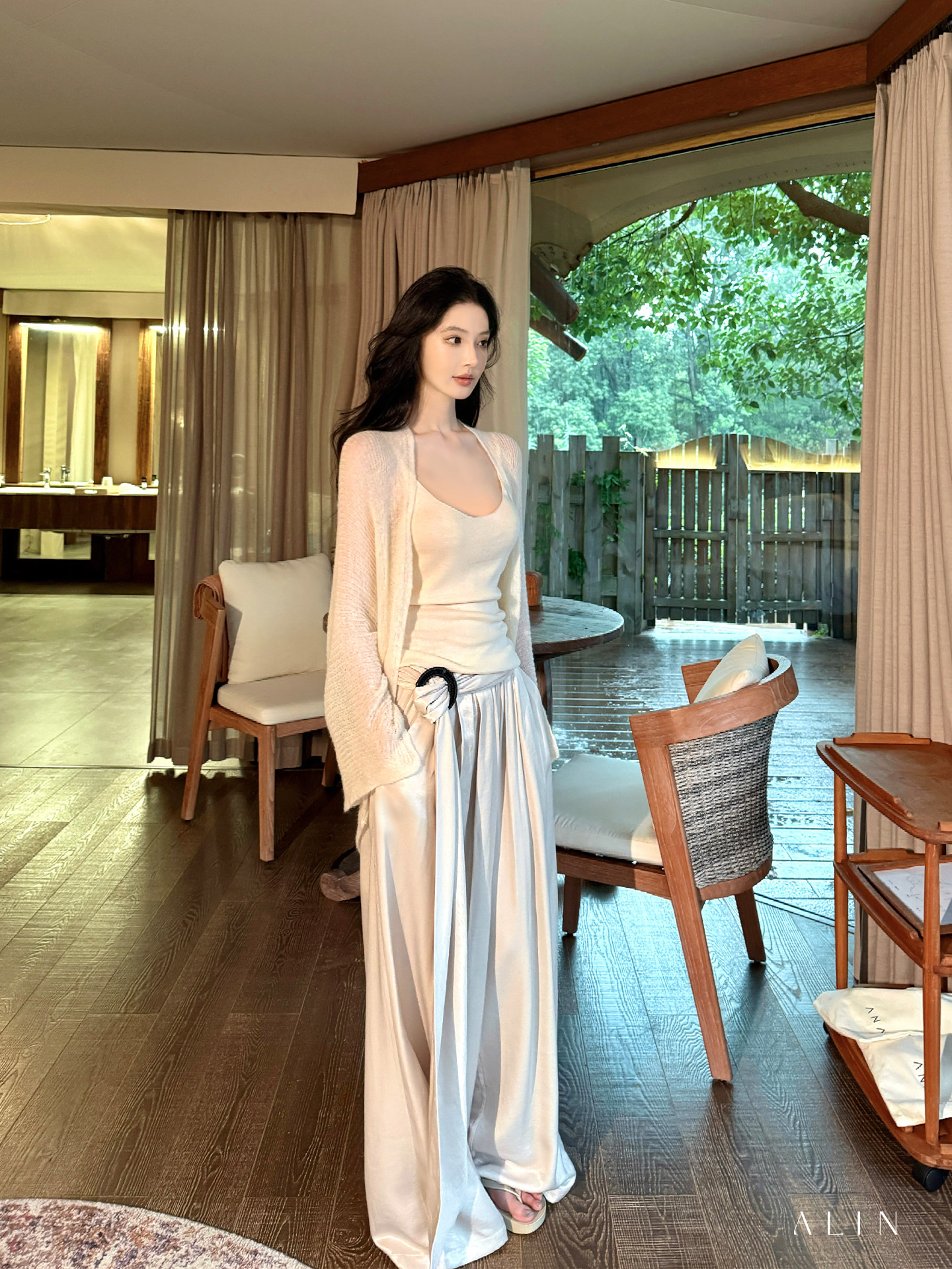 Alin【Minimalist Lines】Satin High-Waisted Suit Pants for Women, Draped Thin Straight-Leg Wide-Leg Pants for Autumn Al5Gsk