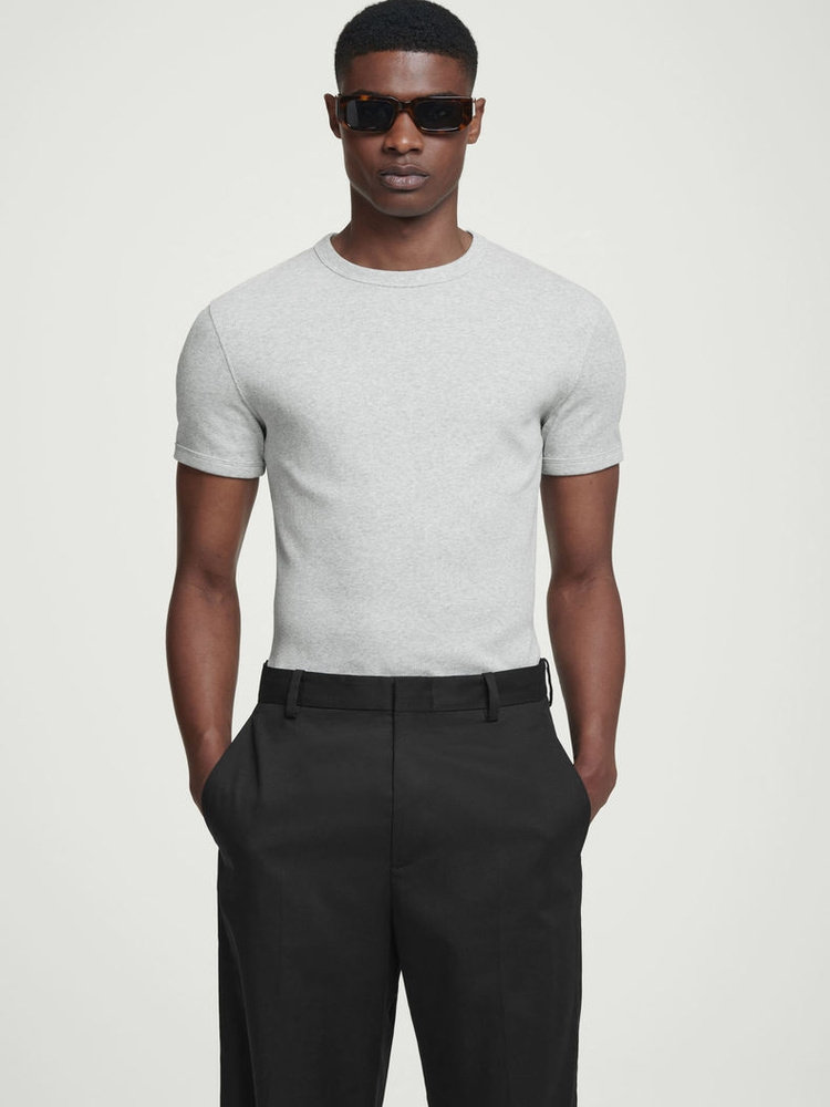 C*S Men's Slim Fit Crew Neck Ribbed Short Sleeve T-Shirt Light Gray 2025 Spring New Arrival 1229297003